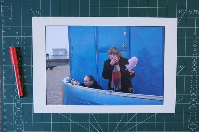 15 by 10 inch print. Swanage pier, crabbing, boat
