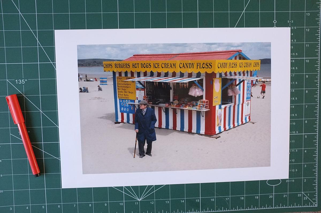 15 by 10 inch print. Swanage pier, crabbing, boat